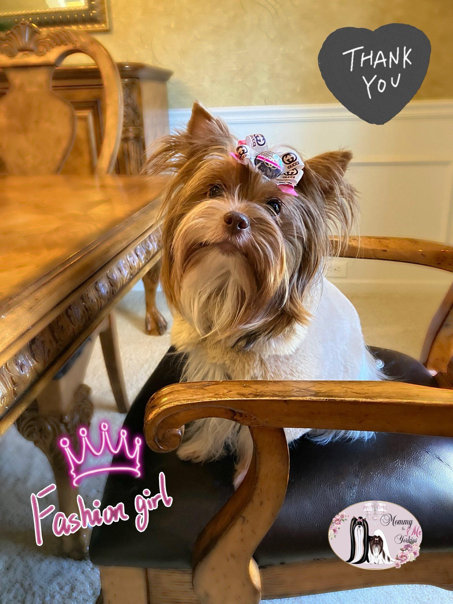 Meet Ahsoka! She is one of our beautiful dams. She is DNA genetic health and breed (100% purebred Yorkshire Terrier) tested through Embark. She has been acid bile, Patella & heart evaluated. She has a beautiful silk coat, a fun & playful personality, and she is an extremely nurturing mother.