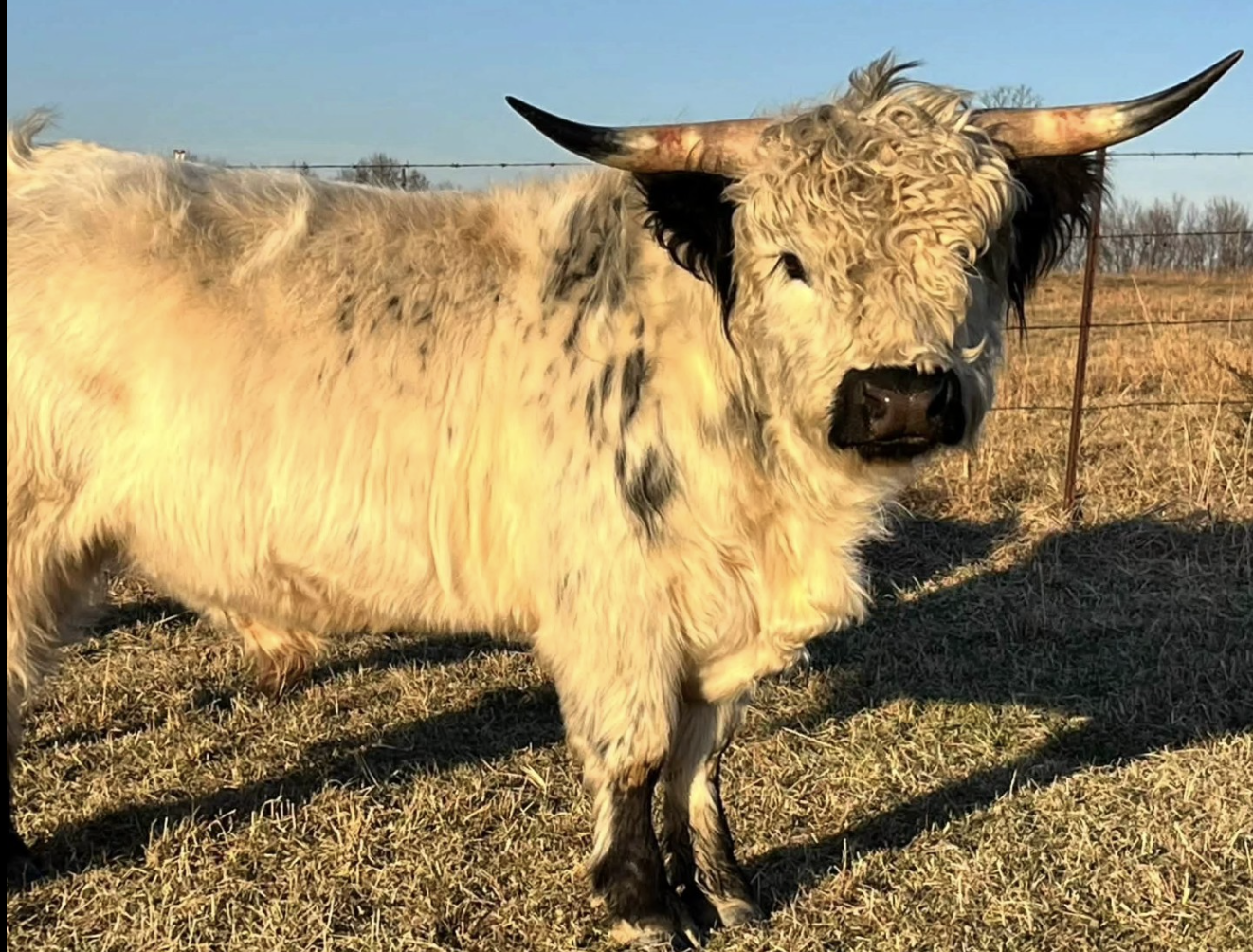 Bamboo came to Four Caves Farm from Susan Kovaks herd in Wisconsin 🫶 He is the son of the stunning, Everett (a red tipped highpark bull) and Kyla (a dun highland).