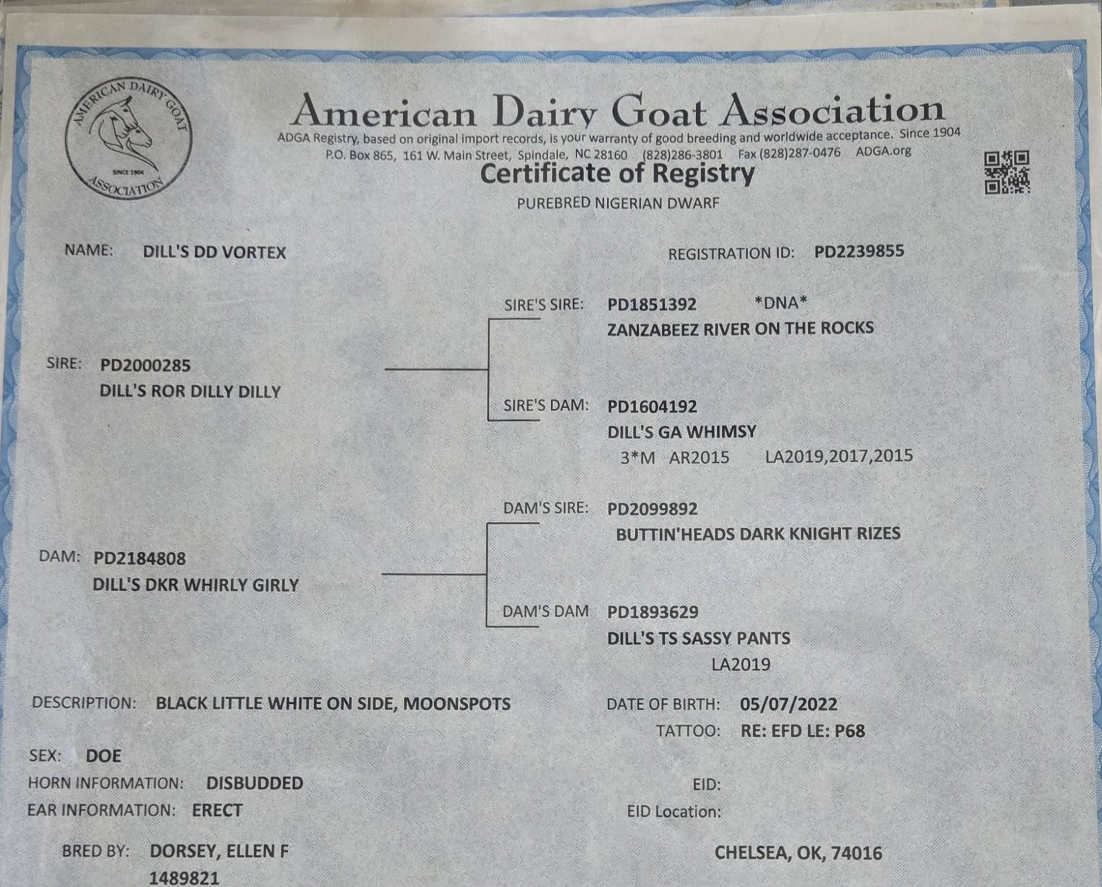 P Pint Size Pastures @pint-size-pastures · Posted by Ginger Jackson · Apr 25 Ginger Jackson added a new Registration record to Mary's profile. Registration Apr 25, 2026 View record Registered Name: Wills DD VortexRegistry Association: American Dairy Goat AssociationRegistration Number: PD2239855