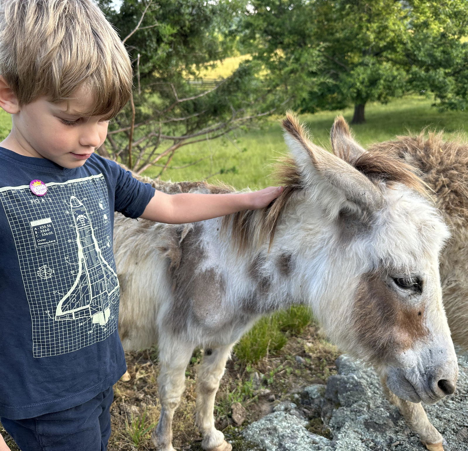 Fantine was the first mini donkey we welcomed to our farm, and she's been a steady companion and friend to us and her fellow donkeys. She is incredibly gentle and friendly with our kids and all other visitors.