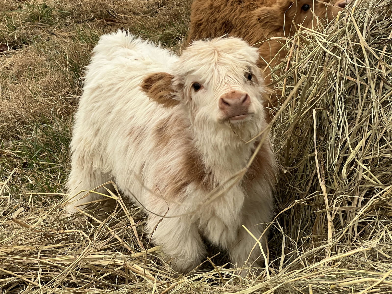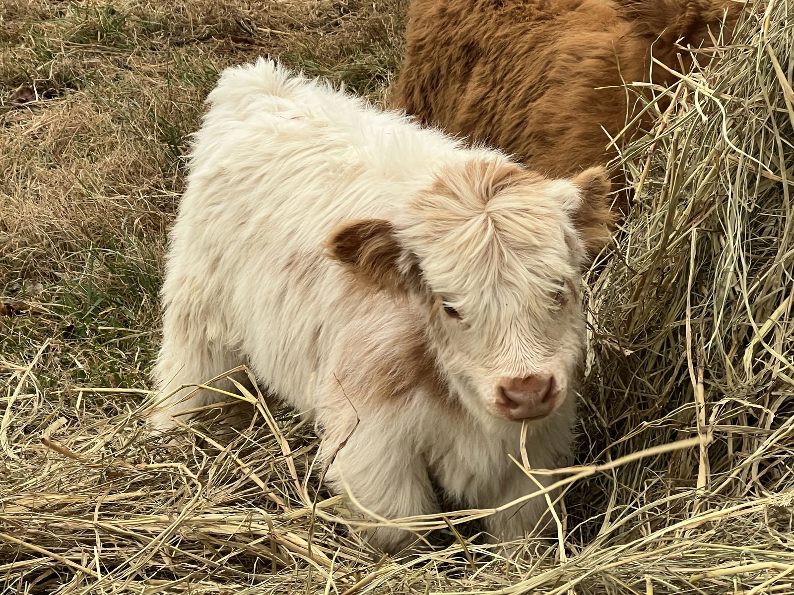 RBH Nova, dob 10/14/25, is an 87.5% yellow tipped highpark heifer that we suspect will carry the wild gene like her mother. Her yellow color will make for a variety of color options when breeding her in the future. We believe her to be chondro+ and are listing her as such. She will be tested to verify before her contract is completed. Her birth weight was 30lbs and she was 20” tall at birth. She will be mother raised and can go to her new home around May 2026. Nova comes from a disease tested herd and we give a health guarantee in our contract. She will be well socialized and started on halter before going home. Both of Nova’s parents are on farm, pictured here, and we welcome visitors.